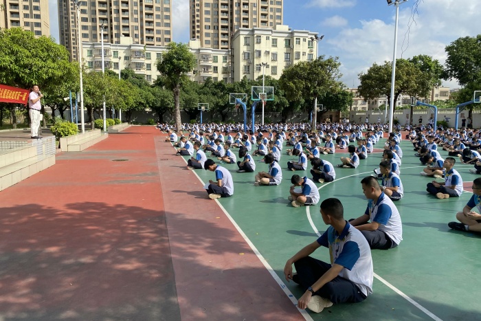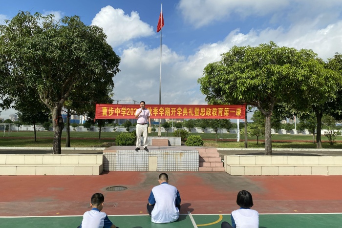 為了讓全體同學養成良好的行為習慣,盡快融入新學期的校園生活,曹步初級中學于2021年9月2日早上召集全體同學在籃球場開展了一次紀律教育活動。本次活動由德育主任鄧妃弟主講,全體師生參加了此次活動。