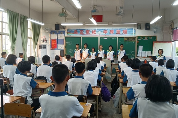 為培養(yǎng)學(xué)生的自我管理意識(shí),鍛煉民主自理自治能力,營造良好班風(fēng)校風(fēng),9月9日下午夕會(huì)時(shí)間,曹步中學(xué)德育處及名班主任工作室組織全校班主任觀看毛茜老師帶領(lǐng)的初三(5)班夕會(huì)展示課。