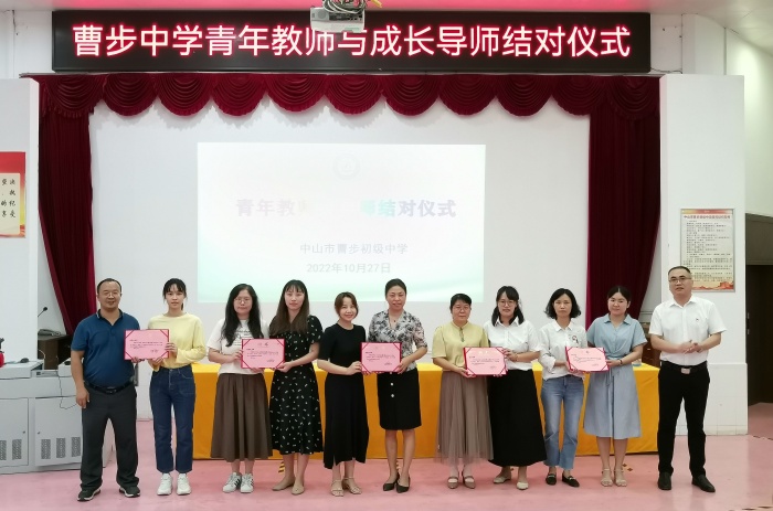 “新竹高于舊竹枝,全憑老干為扶持?!苯Y對儀式只是一個開始,接下來,學校將開展更多的拓展活動促進教師隊伍的成長。相信在骨干教師的引領下,在青年教師的不斷努力下,曹步中學將邁向新臺階,走向新輝煌!