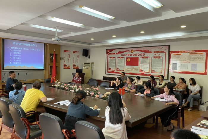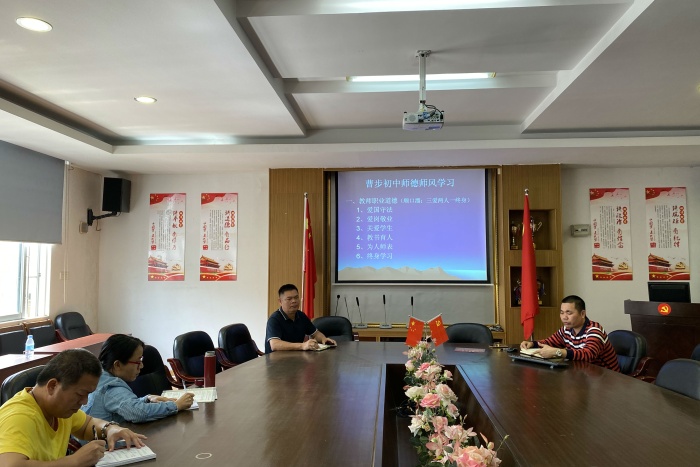 10月23日上午,曹步中學在二樓會議室召開“師德師風”專題學習會議,副校長吳文杰強調要加強師德師風建設,培養高素質教師隊伍,希望老師們牢記《新時代中小學教師職業行為十項準則》,全面提升教師思想政治素質和職業道德水平。