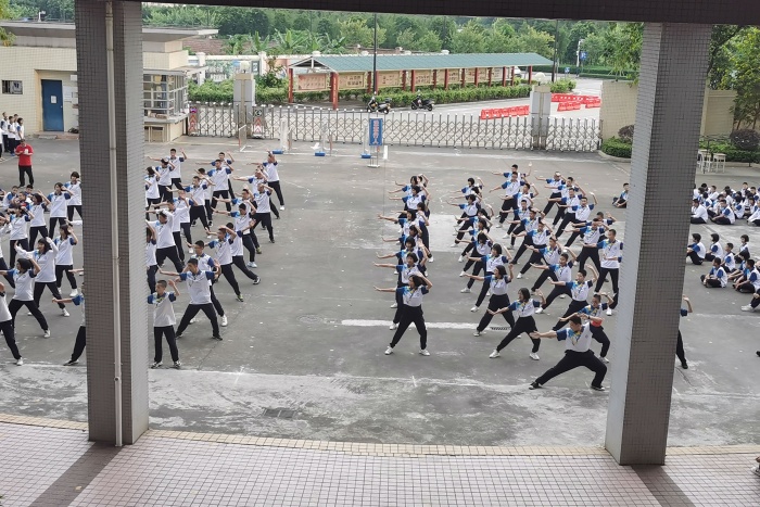 為了增強同學們的體質,2020年10月16日下午,曹步中學在中大堂前舉行了初一、初二級課間操行為規范比賽暨武術操比賽。本次活動由體育老師賀坤主持,初一初二全體同學和部分家長參加了本次活動。學校領導和家委擔任本次活動的評委,14個班級都拿出了高超的表演水平,觀眾席和評委席響起陣陣掌聲。