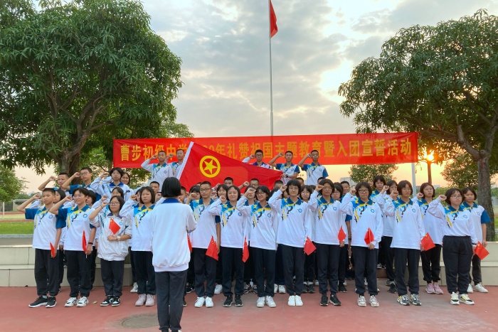 為慶祝新中國成立71周年,加強愛國主義、集體主義、社會主義教育,引導全校師生樹立正確歷史觀、國家觀、民族觀、文化觀,10月10日下午,曹步中學隆重舉行了“禮贊祖國華誕71周年”大型主題教育暨入團宣誓活動。