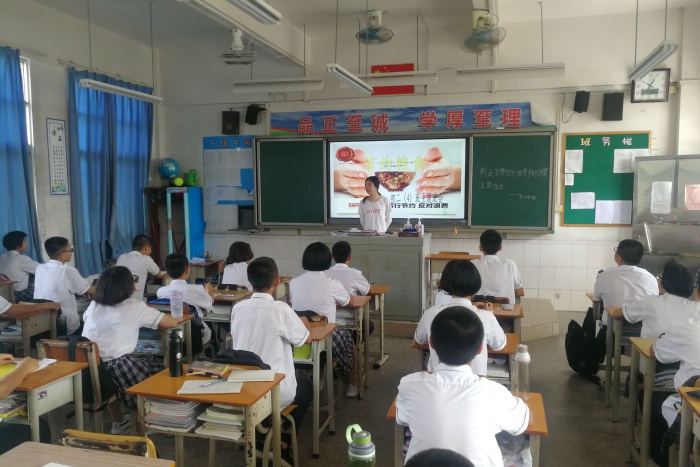 隨后,班會(huì)課時(shí)間,全體班主任組織同學(xué)們開展了以“制止浪費(fèi)行為、培養(yǎng)節(jié)約習(xí)慣”為主題的班會(huì)課教育。班會(huì)課上,同學(xué)們通過圖片了解到中國(guó)式盛“宴”以及飯?zhí)镁筒屠速M(fèi)的不良現(xiàn)象,從而引發(fā)了同學(xué)們對(duì)浪費(fèi)糧食的思考。糧食對(duì)于世界各地的貧窮人家來說是非常重要的,老師們通過一組組觸目驚心的數(shù)字告誡同學(xué)們每年因?yàn)轲囸I而死亡的兒童人數(shù)是巨大的。班會(huì)課的最后,老師們鼓勵(lì)同學(xué)們以實(shí)際行動(dòng)參與“光盤行動(dòng)”,以勤儉為榮,以浪費(fèi)為恥。各班同學(xué)之間也相互監(jiān)督提醒,促進(jìn)良好習(xí)慣養(yǎng)成,為建設(shè)文明、和諧的校園做出應(yīng)有的貢獻(xiàn)。
