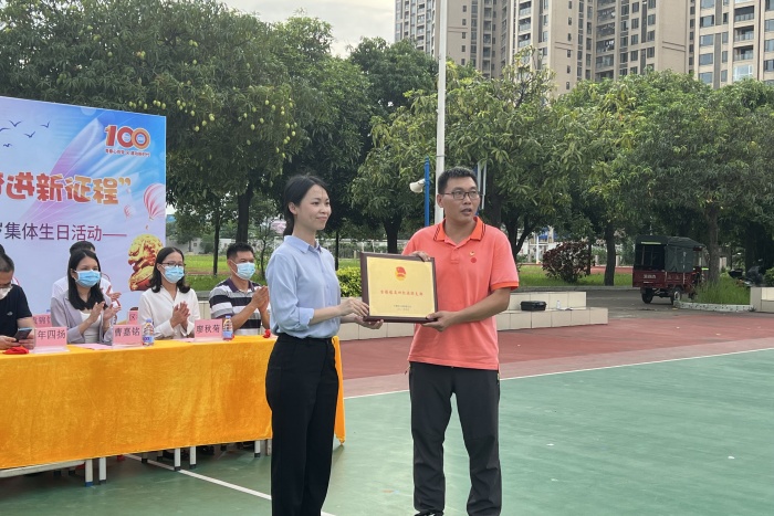 在歌唱團歌《光榮啊,中國共青團》后,在場的所有共青團員、少先隊員在王境杭同學的激情領讀下,一起為新團員們,為慶祝建團百年的喜悅之情作出了獻詞,給本次活動畫上了完滿的句號。
