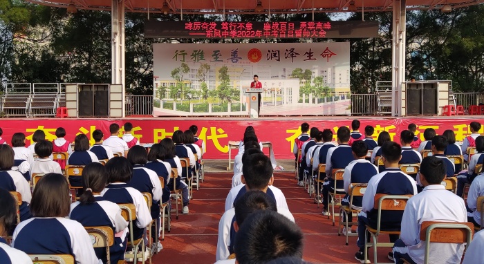 春日晴暖花自啟,奮斗有為正當(dāng)時。為鼓舞士氣,堅定沖刺中考的必勝信念,2022年3月11日上午,東鳳中學(xué)在運動場舉行了“踔厲奮發(fā) 篤行不怠 鏖戰(zhàn)百日 勇攀高峰”2022年中考百日宣誓大會。出席大會的除了學(xué)校的領(lǐng)導(dǎo)、全體中考科目老師以及初三、初二學(xué)生外,還有初三級的家長代表。