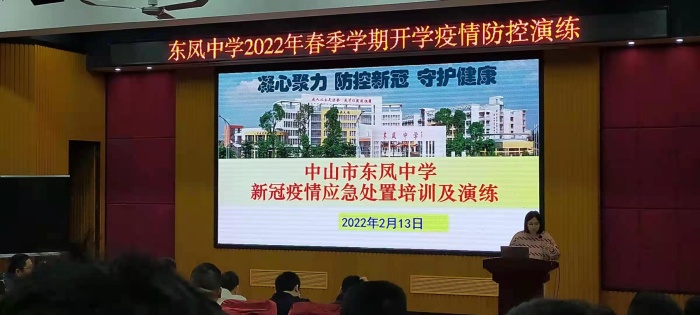 會議第一個環節,由東鳳中學廖小雯校醫就學校疫情防控事項進行講解,對東鳳中學新冠肺炎疫情應急處置進行培訓及演練,明確學校重點崗位教職員工防疫職責與任務清單,強調疫情防控不能松懈。