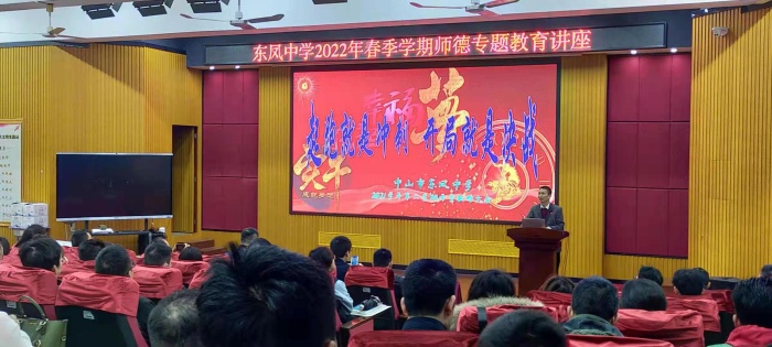 2022年2月13日上午,東鳳中學全體教師共聚階梯室召開春季學期開學教師大會,會議主要圍繞春季學期開學疫情防控演練、春季學期師德專題教育、上學期學科教學工作總結以及新學期教學工作安排等內容進行開展,學校以此翻開了新學期的扉頁。