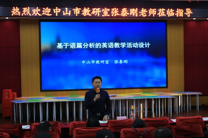 本次教研活動的第二個環(huán)節(jié),張?zhí)﹦偫蠋熞浴痘谡Z篇分析的英語教學活動設(shè)計》為主題,為東鳳中學全體英語教師開展了一次教學講座。在本次講座中,張?zhí)﹦偫蠋煆摹盀槭裁捶治稣Z篇”“語篇分析主要分析什么”和“教師為什么要設(shè)計教學活動”這三個方向為我們講述了鍛煉學生英語思維能力,要求教師從文本選擇到分析文本再到教學活動設(shè)計的每個步驟都需要基于真實語境。張老師的講座為各位老師以后的教學活動設(shè)計帶來了新的指導(dǎo)意見。