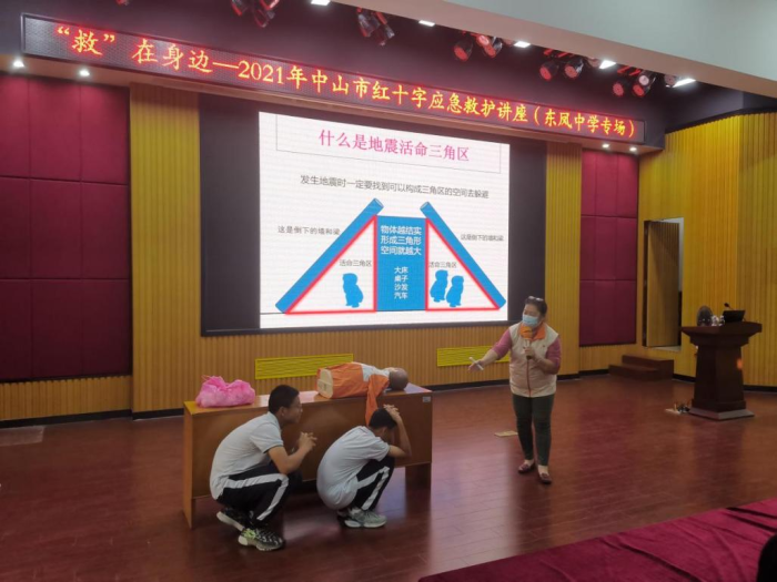 為進一步普及應急救護知識技能,增強學生自救互救和防災避險能力,推進平安校園、和諧校園建設,在市教育和體育局和市紅十字會的指導幫助下,2021年10月19日下午,中山市東鳳中學開展應急救護培訓進校園活動。中山市紅十字會的高小紅老師給學生們帶來了一堂生動的應急救護課。