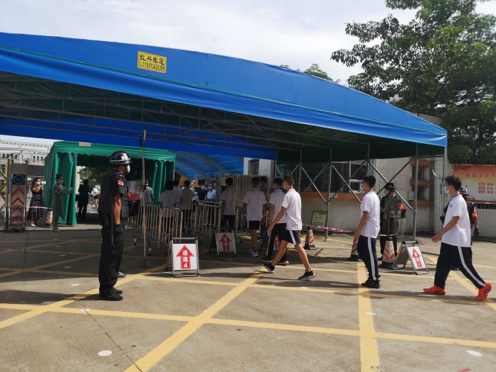 演練活動共分為四個場景,分別是:學生返校進入校園演練、課堂疫情演練、用餐演練及住宿演練。演練模擬了四個場景中可能出現的學生發燒、咳嗽等一系列應急情況,科學、有序開展了應急處理預案,把防疫責任落實到每個負責人身上,為開學后的校園安全和正常教學秩序提供保障。