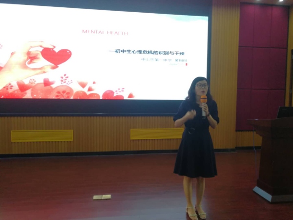 接著,黃老師圍繞“心理危機(jī)的識(shí)別和干預(yù)”、“常見(jiàn)心理問(wèn)題的應(yīng)對(duì)”“教師自我調(diào)適”這三個(gè)方面與現(xiàn)場(chǎng)班主任進(jìn)行交流分享。黃老師首先分享自殺學(xué)生在各年級(jí)所占的比例,提出自殺危機(jī)一個(gè)都嫌多的觀(guān)點(diǎn),同時(shí)指出面對(duì)嚴(yán)重危機(jī),切忌想當(dāng)然,也“無(wú)需害怕”,危機(jī)亦為轉(zhuǎn)機(jī)!進(jìn)而和老師分享要關(guān)注心理高危學(xué)生的日常關(guān)注事例,遇到危機(jī)發(fā)生時(shí),要理解學(xué)生的感受,確保生命安全,聯(lián)系家長(zhǎng),啟動(dòng)學(xué)校應(yīng)急系統(tǒng),拖延到專(zhuān)業(yè)救援到來(lái)。黃老師提到,人人都可能面臨心理困擾,大部分的心理問(wèn)題都是心理亞健康,現(xiàn)代社會(huì),越來(lái)越多的人借助心理咨詢(xún)完善提升自我,教師們要有維護(hù)自己心理健康的意識(shí),對(duì)自己負(fù)責(zé),先關(guān)愛(ài)自己、再去關(guān)愛(ài)學(xué)生、助學(xué)生健康發(fā)展。最后,與老師們共勉:做好學(xué)生的重要他人!
