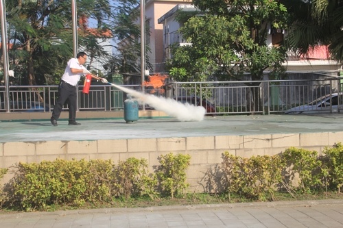 此次消防安全疏散演練活動采用實戰方式進行,用煙餅制造煙霧模擬火情,隨即拉響警報,各樓層人員迅速到位指揮學生捂住口鼻有序撤離到安全區域。學生到達后,班主任快速清點人數,并逐級上報。短短四分鐘內,兩千多師生全部安全疏散到廣場。隨后安全處謝主任及時針對此次疏散演練進行了細致的總結,并為師生講解滅火器的使用方式,同時進行了演示。部分班主任也受邀上臺操作滅火器進行滅火。最后鵬誠學校張星海校長對此次消防安全應急疏散演練進行了總結,表揚了演練活動中師生逃生的鎮定以及有序,同時也強調師生在遇到危險時,要沉著應對,及時報告、及時逃生,提高應對緊急突發事件的能力。