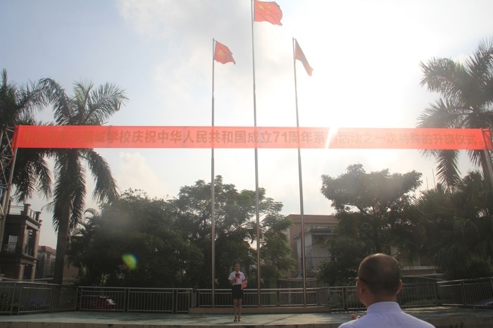 為慶祝中華人民共和國成立71周年,弘揚愛國主義精神,激發師生愛國情感、報國之志,中山市阜沙鵬誠學校于2020年9月30日上午,舉行了慶祝中華人民共和國成立71周年系列活動之一次特殊的升旗儀式。