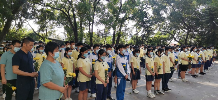 最后,在《獻花曲》聲中,阜沙中學學校全體行政、教師及學生每人依次向革命英雄敬獻1支鮮花,行三鞠躬。