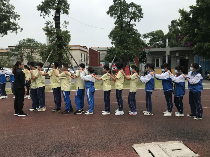 本次德育拓展活動首先由課題主持人王武輝老師和課題組成員孫滔、朱四萍、陳浩芳、劉樂琴、鄭志權等五位老師圍繞“愛國”為主題開展德育拓展活動。他們主持的游戲是 “重走長征路”,課題組的老師圍繞紅軍長征的紅色故事設置游戲情境,學生隊伍中指揮者根據老師設置的 “長征路線”,穿越預定的路線。游戲結束后,進行游戲感受分享,在游戲中同學們感受到了小組同學規則、默契的重要性。同時也通過這個游戲,學生們深深地感受紅軍長征的不容易,在黑夜中“穿山越嶺”,秉著堅持就是勝利,永不放棄的敬業精神,突破種種障礙,最終到達勝利的彼岸,從而增強學生的愛國情懷,讓學生更加珍惜如今來之不易的幸福生活。