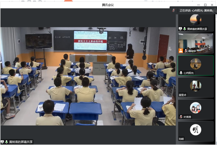 首先,大家在線觀摩了良都中學黃轉喜老師的《五四運動》直播課。黃老師執教的《五四運動》一課,始終圍繞新民主主義革命的開始為核心,以五四運動的基本史實為線索,以“一場屈辱的外交失敗”“一次偉大的民族覺醒”“一個革命的歷史轉折”“一種精神的薪火相傳”四個維度將運動的背景、過程、意義與單元主題新民主主義革命的開始緊密相關。