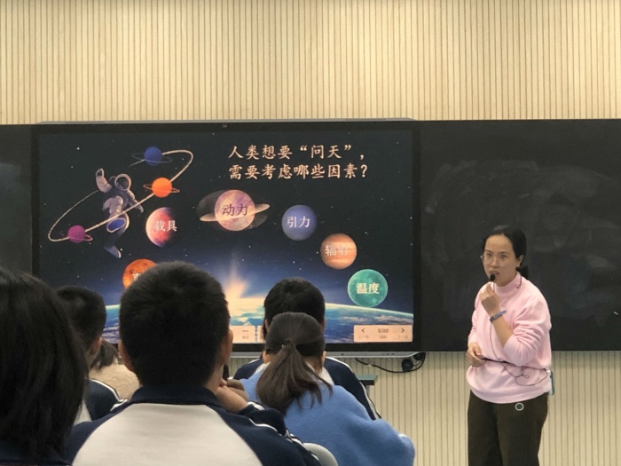 本次的課題組活動分為教師授課和交流研討兩個環節。第一環節由課題組成員孫妙芳老師上跨學科主題研討課《問天之路》。整節課孫老師用心設計每一個教學活動和環節,每一個活動都緊緊圍繞跨學科主題學習目標進行,層層深入,既培養學生綜合運用不同學科知識解決問題的能力,又強化了學生對于結構決定性質,性質決定用途的化學大概念教學的運用,學生們通過老師精心設計的問題,一步步認識到跨學科知識對解決我國航空技術問題的重要性,同時也讓學生在學習的過程中領略到我國科技發展帶來的自豪感和使命感。第二環節課題組全體成員集中交流研討,針對孫老師整節課的設計思路提出了許多很有啟發性的想法,例如:如何進一步厘清跨學科主題學習的重難點,如何降低學生學習的難度,如何提高了學生參與課堂活動的積極性等等。課題主持人梁錫老師就基于跨學科主題學習課堂教學中大概念的提取提出了寶貴的建議。課題組通過本次研討活動統一了“聚焦專題—課堂實踐—反思重建”的研討模式。