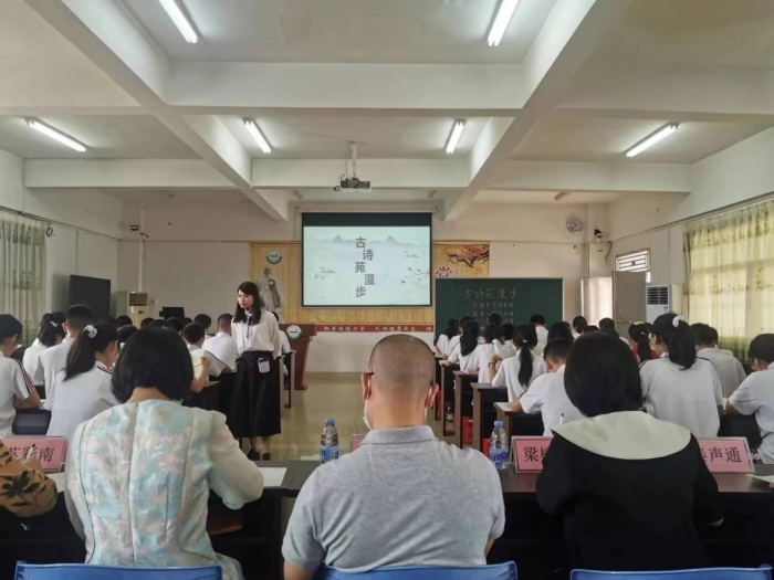 活動伊始,港口中學劉素儀老師為大家呈現了一節傳統文化教育課例——古詩苑漫步。課堂中,劉素儀老師與學生一起“玩轉”古詩詞,讓學生在快樂中學習傳統文化,汲取到古詩詞的精神力量,收獲了不錯的反響。在隨后的座談中,各位專家也給予劉素儀老師高度肯定。
