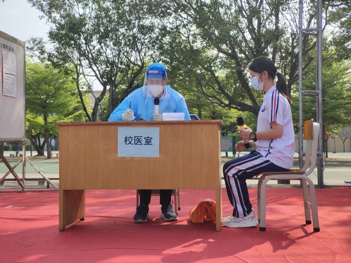 本次疫情防控應(yīng)急處置演練采用“情景模擬”方式,模擬課室里出現(xiàn)疑似疫情的應(yīng)急處置。某一天上午第二節(jié)課,初二1班正在上物理課,突然有一位學(xué)生向老師報告有點發(fā)燒,請求測體溫,經(jīng)探測,學(xué)生體溫異常。經(jīng)過詢問,老師了解到該生家庭成員有與高風(fēng)險地區(qū)人員有接觸史,同時,該生家內(nèi)出現(xiàn)聚集性病情。老師感覺情況嚴(yán)重,立即通知班主任到課室維持秩序,并帶學(xué)生到校醫(yī)室進(jìn)行處置。經(jīng)過校醫(yī)進(jìn)一步測溫,學(xué)生體溫超過37.3℃,通過流行病學(xué)史篩查,校醫(yī)初步研判該生為疑似病例。校醫(yī)立即向?qū)W校請示匯報,然后聯(lián)系醫(yī)院發(fā)熱門診對學(xué)生進(jìn)行轉(zhuǎn)運(yùn)處置。初二1班學(xué)生同時轉(zhuǎn)移至備用室上課。消毒人員立即到初二1班課室與校醫(yī)室進(jìn)行消殺。家長聞訊,立即趕赴醫(yī)院看護(hù)孩子,等待核酸檢測結(jié)果。幾小時過去,醫(yī)院核酸檢測結(jié)果為陰性,初二1班恢復(fù)上課秩序,學(xué)生居家觀測并開展線上學(xué)習(xí),直至康復(fù)方可返校復(fù)課。