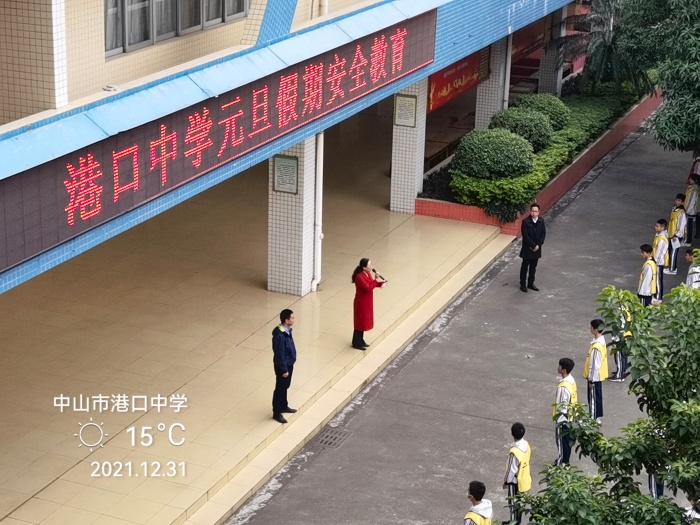 2022年元旦假期將至,為了讓全校師生度過一個(gè)平安、快樂的假期,2021年12月31日上午,中山市港口中學(xué)召集全體師生在學(xué)校中心廣場開展2022年元旦慶祝暨節(jié)前安全教育活動(dòng)。活動(dòng)由德育處副主任張建榮主持。