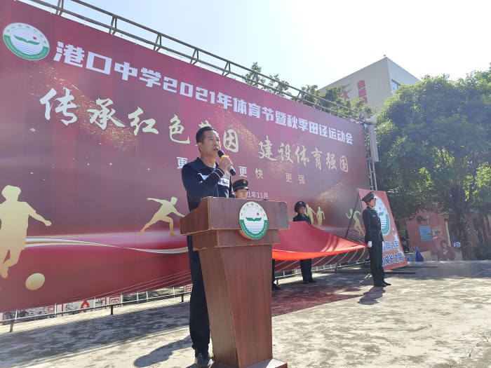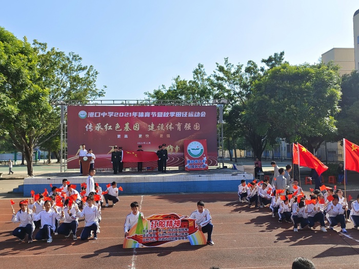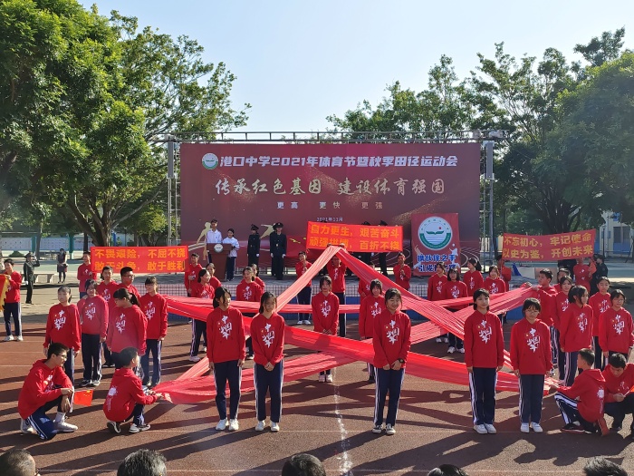 為慶祝中國(guó)共產(chǎn)黨成立 100 周年,學(xué)光輝黨史,傳紅色精神,用黨的偉大成就激勵(lì)學(xué)生,用黨的優(yōu)良傳統(tǒng)教育學(xué)生, 用黨的成功經(jīng)驗(yàn)啟迪學(xué)生,為廣大師生提供生動(dòng)鮮活的中國(guó)精神學(xué)習(xí)氛圍,2021年11月,港口中學(xué)2021年體育節(jié)暨秋季運(yùn)動(dòng)會(huì)圍繞“傳承紅色基因,建設(shè)體育強(qiáng)國(guó)”為主題開展。