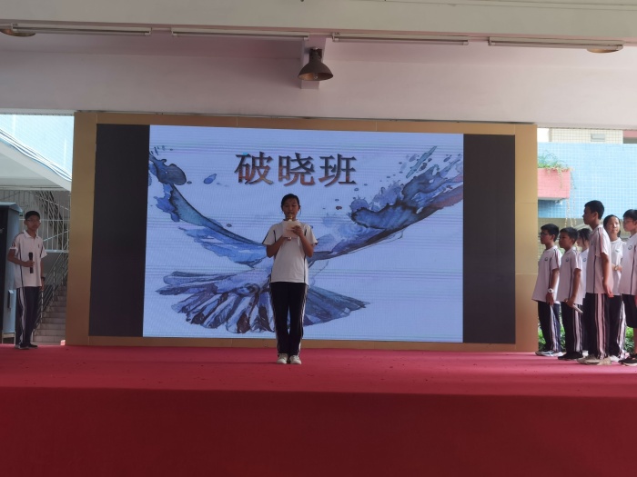 巡展班級按照“班名展示”、“班徽展示”、“班級口號、目標(biāo)、誓詞展示”、“小組文化展示”、“班級文化布置展示”、“班級特色才藝展示”、“班歌展示”等基本流程進(jìn)行展示。各班同學(xué)充分發(fā)揮聰明才智,精心設(shè)計班名和班徽,制定班規(guī)、公約和奮斗目標(biāo),展示本班的特色和風(fēng)采。