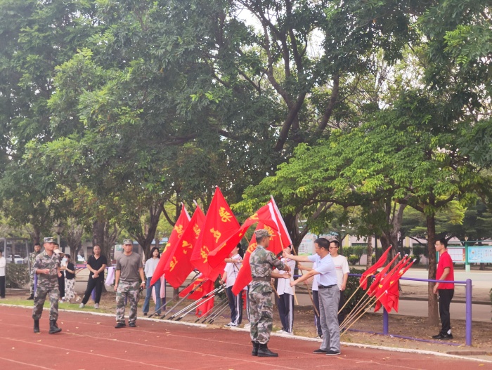 最后,港口中學秦聲通校長宣布:港口中學2022年秋季學期國防教育開訓,并為班級授旗。