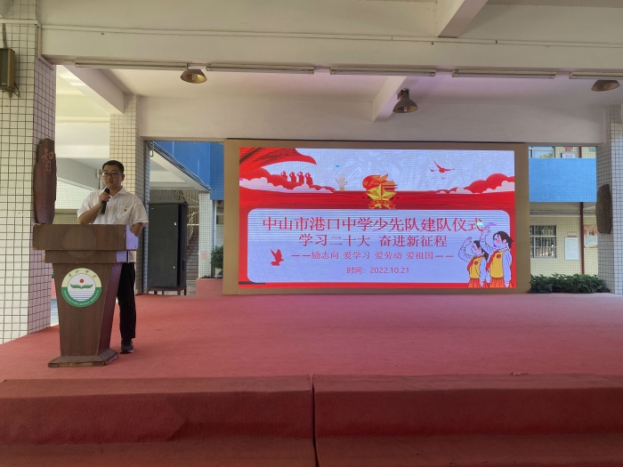 學(xué)習(xí)黨的二十大,爭(zhēng)做新時(shí)代好少年。為深入學(xué)習(xí)領(lǐng)會(huì)習(xí)近平總書(shū)記關(guān)于少年兒童和少先隊(duì)工作的重要論述,貫徹落實(shí)黨的二十大精神和第八次全國(guó)少代會(huì)精神,推動(dòng)少先隊(duì)三個(gè)政策文件落地落實(shí),切實(shí)增強(qiáng)少先隊(duì)員光榮感和組織歸屬感,推動(dòng)新時(shí)代少先隊(duì)事業(yè)實(shí)現(xiàn)新發(fā)展。10月21日,中山市港口中學(xué)舉行初一中隊(duì)建隊(duì)儀式。