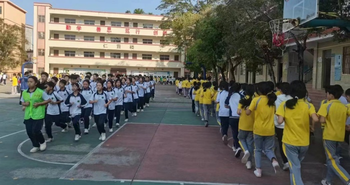 肖偉慶老師介紹說麻榨中學(xué)是麻榨鎮(zhèn)唯一的一所公辦初級(jí)中學(xué),學(xué)生人數(shù)近千人,老師六十多位,恰好是港口中學(xué)一半的辦學(xué)規(guī)模,麻榨中學(xué)位置偏遠(yuǎn),教育資源較為匱乏、工作環(huán)境相對(duì)艱苦,但是學(xué)生純樸,校風(fēng)良好,師生關(guān)系融洽。惠州市教育局和麻榨中學(xué)領(lǐng)導(dǎo)重視幫扶工作、關(guān)心支教老師,及時(shí)改善寢食條件,在麻榨中學(xué)領(lǐng)導(dǎo)的關(guān)心幫助下,肖老師很快就安頓下來并投入到支教工作中。肖老師承擔(dān)了5個(gè)班的體育教學(xué)工作,積極參與到麻榨中學(xué)各項(xiàng)教育教學(xué)工作中,在支教工作中,肖老師毫無保留地向麻榨中學(xué)的老師輸出了港口中學(xué)的教學(xué)理念、教學(xué)模式以及教學(xué)經(jīng)驗(yàn)等。期間,肖老師詳細(xì)研究了麻榨中學(xué)課間操的組織情況,在征求領(lǐng)導(dǎo)建議后,肖老師與麻榨中學(xué)的體育科組通力合作,制定了詳細(xì)方案,對(duì)升旗和大課間進(jìn)退場進(jìn)行合理設(shè)計(jì),規(guī)劃升旗隊(duì)伍站隊(duì)位置,實(shí)施年級(jí)分場地分項(xiàng)目進(jìn)行課間活動(dòng)的舉措,促使升旗儀式和大課間活動(dòng)更加合理、有序、有效地進(jìn)行,強(qiáng)化了學(xué)生良好行為習(xí)慣的養(yǎng)成,推動(dòng)了學(xué)校德育工作的開展。此外,肖老師還開展公開課授課活動(dòng),將前沿的體育教學(xué)理論帶入課堂,促進(jìn)了學(xué)校體育課堂的改革。