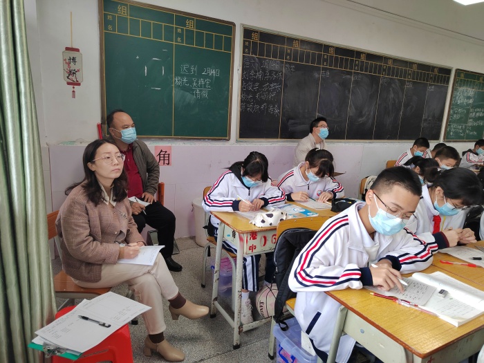 各聽課老師根據課程表、任課分工表選取第二節和第三節課,由學校行政班子和教研組長陪同走進班級、走進課堂,從課前備課、講學稿設計、課堂組織、教學方法、教學效果等多個方面了解教學情況,準確把握課堂師生動態。課后,聽課老師、授課老師和各級領導在港口中學榮譽室對每一位授課教師的課堂教學情況進行了評課、研討和交流,分別從教學目標、教學環節、教學效果等方面對上課老師進行了細致耐心的點評與指導。