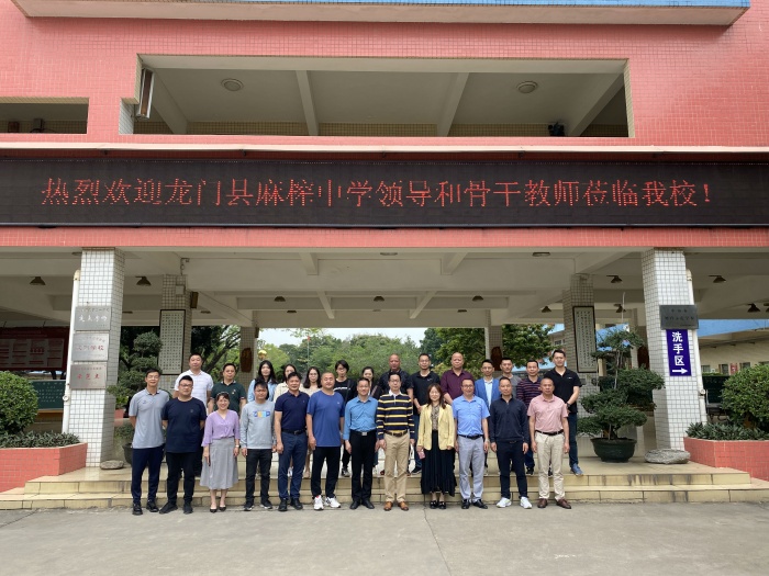 2023年4月13日至14日,惠州市龍門縣麻榨中學鄭志強校長率學校部分行政、骨干教師等蒞臨港口中學進行學習交流活動。港口鎮教體文旅局副局長劉長路,鎮教育和體育事務中心廖志堅、陳樹洪專干,港口中學副校長范泰昭、張麗君及行政熱情歡迎惠州同行的到來。