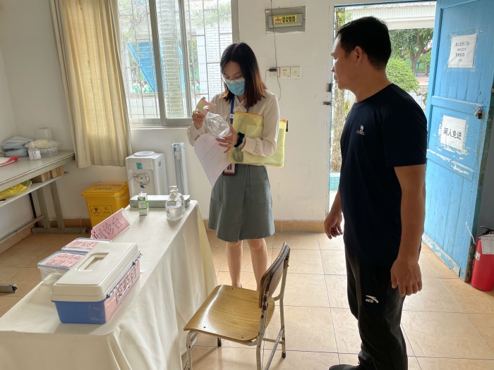 3月15日下午,港口鎮衛生監督部門領導來到學校,實地查看了校園環境,深入教室、各功能室等區域了解消毒防疫物資的落實情況,認真聽取了學校疫情防控工作匯報,并對防控過程中的不足之處提出了相應的整改意見。