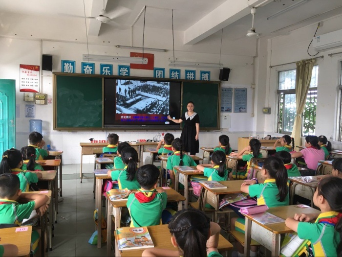 各年級各班根據學生年齡特點,精心選擇合適的活動內容,采用學生易于接受的活動形式,組織開展活動。老師們向學生簡單的介紹了發生在70多年前那場戰爭的相關史實,有的班級給孩子們講述了抗日小故事,有的班級組織觀看抗日題材電影;有的班級組織觀看抗日史料圖片展。王二小、小英雄雨來、狼牙山五壯士……一個個抗戰英雄的故事;《地道戰》《南京大屠殺》《平原游擊隊》……一部部抗戰主題的影片;一張張日本侵略者血腥屠殺中國百姓的照片;一段中華民族深受蹂躪的屈辱歷史的回顧。