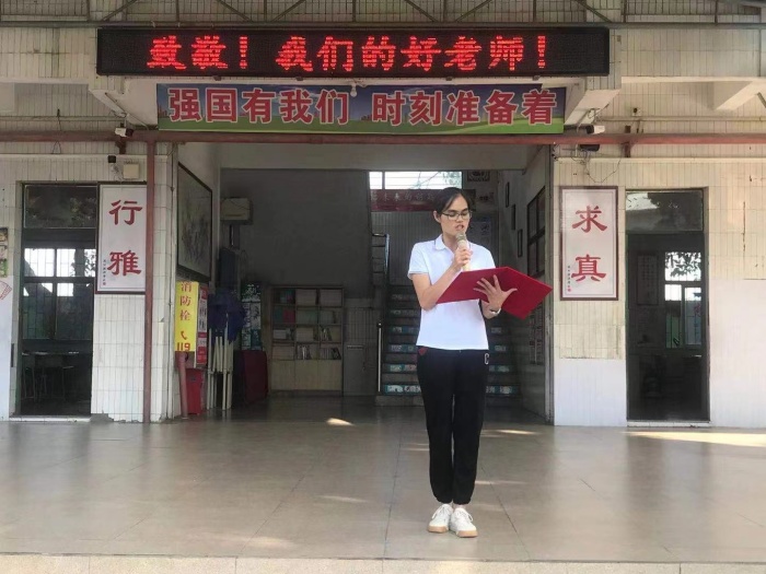 9月9日早上,全校師生集中到操場進行了感念師恩主題教育活動。本次活動由德育處主任陳金祥主持,首先由教導處陳春霞主任致辭,她希望教師們牢記教書育人的使命,不斷提高教育水平,賡續百年初心,為實現教育強國的理想做出自己應有的貢獻;希望同學們記住教過自己的恩師,每天用實際行動去回報老師們的辛勤付出。接著學生代表——吳羽彤,黃雨軒2位同學朗誦《感謝老師》,汪昕怡同學歌唱《每當我走過老師窗前》熱情謳歌辛勤付出的園丁,以最真誠的心祝福全體老師“教師節快樂!”
