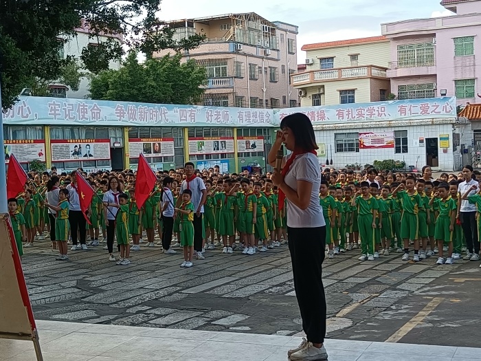 最后,吳曉燕老師激勵大家:紅領巾是五星紅旗的一角,是無數中華兒女用鮮血染紅的,紅領巾是少先隊員的標志,她希望少先隊員在少先隊組織中歷練,為胸前的紅領巾增添光彩,同時也希望各中隊輔導員一如既往,把愛心和熱心獻給孩子,把智慧獻給紅領巾事業,做少先隊員的親密朋友和指導者。愿隊員們在星星火炬旗幟的指引下,茁壯成長!