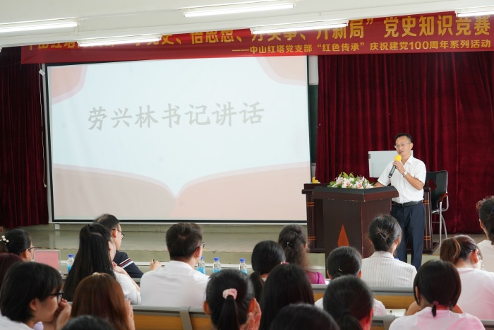 大會第四項,由中山紅塔黨支部書記、中山市廣大匯翠學校理事長勞興林同志講話。