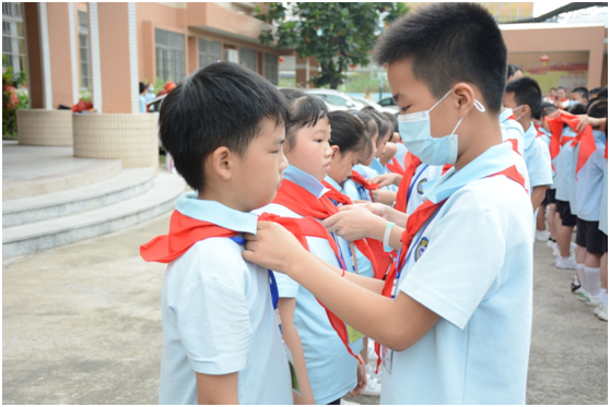 廣浩學校少工委主任黃飛躍對全體同學表達了最深切的問候與祝福,對少先隊員們能加入光榮的少先隊組織表示熱烈的祝賀。勉勵少先隊員們熱愛祖國,熱愛人們,好好學習,好好鍛煉,團結友愛,互幫互助,做好同學們的榜樣。鼓勵其余同學積極向少先隊組織靠攏,持續做好隊前教育課,爭取早日做個合格的少先隊員。