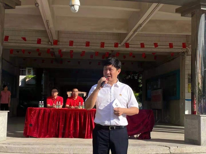 9月1日上午8點,海洲中學全體師生迅速集中廣場,舉行簡單而又隆重的開學典禮。開學典禮由袁錦釗副主任主持。