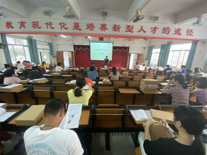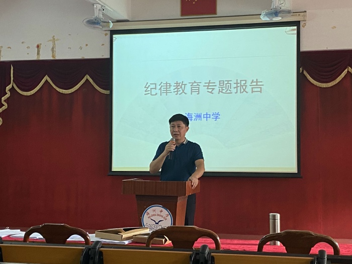 為深入貫徹黨和國家關于加強教師師德師風建設重要精神,認真落實《中山市教育和體育局關于開展2020年師德建設主題教育月活動》和古鎮黨委關于公職人員紀律教育的相關要求,2020年10月16日下午,中山市海洲初級中學全體教師集中學校階梯室,召開紀律教育專題會議。本次會議由海洲初級中學黨支部書記、校長敖萬軍主講。