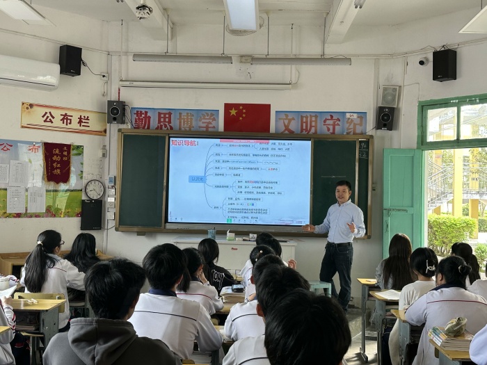 3月23日上午,海洲中學到鳳凰華僑學校支教的周錦聰老師上了一節八年級語文課《大自然的語言》。周老師在課堂上引導學生扎實落實字詞和掌握文章的“整體感知”部分,結合當地特產單樅茶種植和物候現象來臨的決定因素,運用圖片和視頻來激趣、引思、講解,讓學生對課文知識的掌握更加全面深入。課后,針對周老師的課進行點評,余副主任就“初三語文中考備考策略”、張主任圍繞“如何提高文言文教學的有效性”主題,與鳳凰鎮華僑學校的老師們進行了探討。