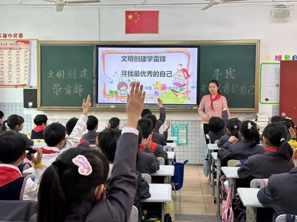 各班級圍繞“雷鋒精神”“文明創建”兩大主題開展主題班會。結合常規工作,老師們抓問題、教做法,通過觀看視頻、情景再現、交流討論,尋找身邊的“活雷鋒”等豐富多元的形式,提高學生的服務意識,讓文明和奉獻的種子扎根在學生的心田,引導學生“學習雷鋒精神,做文明好少年”。