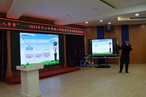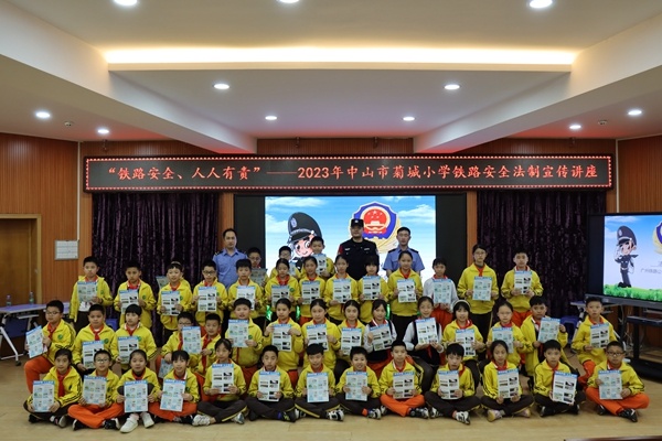 在全國第28個“全國中小學生安全教育日”來臨之際,為進一步提升鐵路沿線中小學生的安全意識和法律意識,確保鐵路運輸安全,2月17日下午,廣州鐵路公安處新會車站派出所走進菊城小學開展鐵路安全宣傳教育活動。