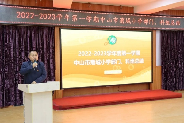 舊歲已展千重錦,新年再進百尺竿。1月5日,中山市菊城小學在學校階梯教室召開2022-2023年學年第一學期部門、科組總結會。會議由學校辦公室熊小平副主任主持,中山市菊城小學全體行政出席了會議。