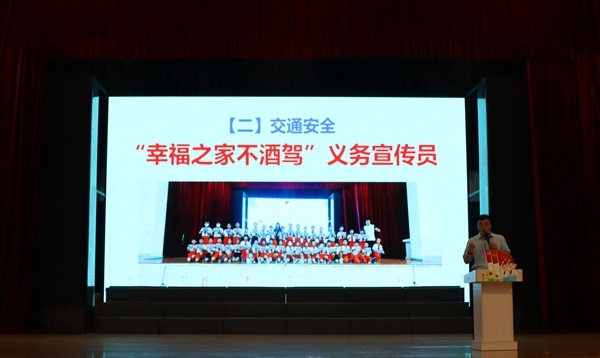 隨后,各個班級的代表上臺接受“幸福之家不酒駕”反酒駕義務宣傳員聘書,合影留念。