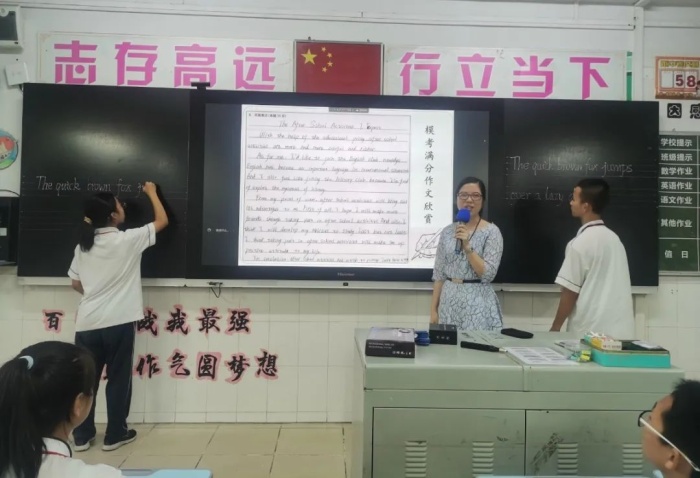 何珊玲老師對應楚校長提到的格局問題,開展了題為“紀中學子,大國擔當!”的小課堂。何老師提出紀中浪網學子應該擁有外在儀態美和內在精神美。“1112”工程,中山紀中浪網學子需踐行,練好一筆好字。葉夏富老師針對同學們在書寫規范方面存在的問題,開展了“如何規范書寫”小課堂。李珍老師開展了“How to Write English Better”的小課堂來讓學生明白英語該如何去書寫。