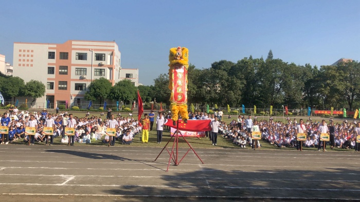開(kāi)幕式尾聲,在一場(chǎng)精彩的舞獅表演之后,全體師生面向國(guó)旗,唱響國(guó)歌。邱慎明副校長(zhǎng)為校運(yùn)會(huì)致辭,希望同學(xué)們?cè)谛_\(yùn)會(huì)中發(fā)揚(yáng)拼搏精神,為班級(jí)爭(zhēng)光。伴隨著校園四周依次響起的爆竹聲,楊銓標(biāo)校長(zhǎng)慷慨激昂地宣布第二十五屆校運(yùn)會(huì)正式開(kāi)始。