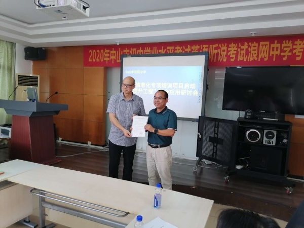 2020年6月24日下午,浪網中學在教師會議室舉行教育信息化專項培育項目啟動暨“提升工程”融合應用研討會。中山市教師進修學院主任吳寒冬、市教育信息中心副主任吳宇清、市教研室物理教研員朱小青、市教育信息中心羅振宇老師、民眾鎮教育事務指導中心科研專干鐘偉云到現場作開題指導。課題負責人邱慎明副校長和課題組全體成員參加報告會。