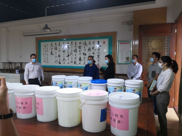 黃鎮長先來到學校物資儲備室,詳細詢問每一項物資儲備了多少、還缺多少,他說:學生返校復學是眼下最重要的工作,是老百姓最關心、黨委政府最核心的工作。學校有什么困難、有什么需要,盡管提出來,鎮里面一定會想辦法幫大家解決。政府的各個部門,也會全力支持。他看到學校里存放著九個大箱、近2萬個口罩,就翻開來查看口罩的合格證,并向民眾鎮衛生服務中心的同志了解這些口罩是否合格,總共可以供師生使用多少天。他要求學校要未雨綢繆,把工作做在前面,適當多儲備一些防疫物資,做到手中有糧、心中不慌。