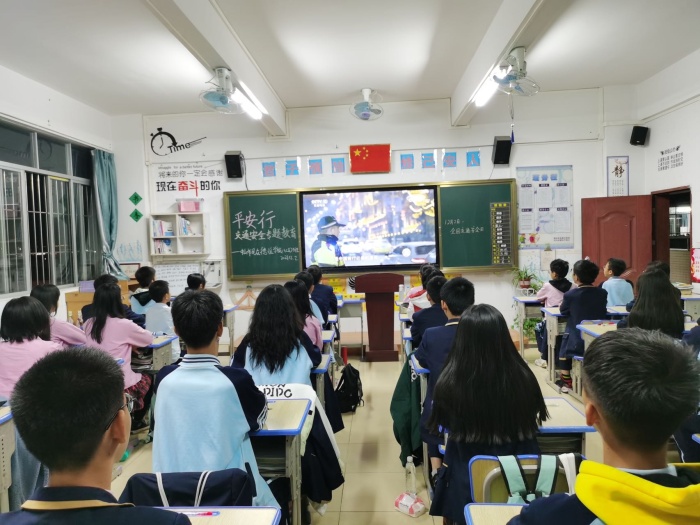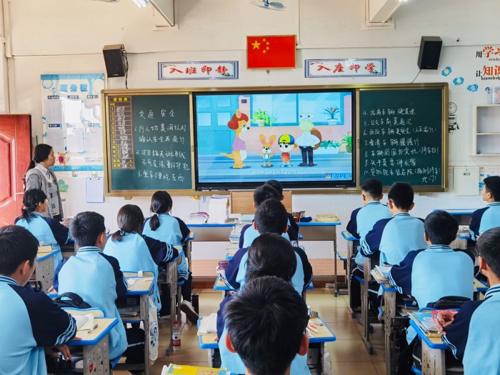 各班主任利用班會課進行交通安全主題教育,通過交通安全知識問答、觀看交通安全宣傳片、安全小故事分享等多種形式,進一步引導學生認識不文明交通行為的危害。