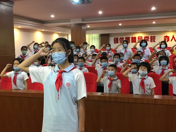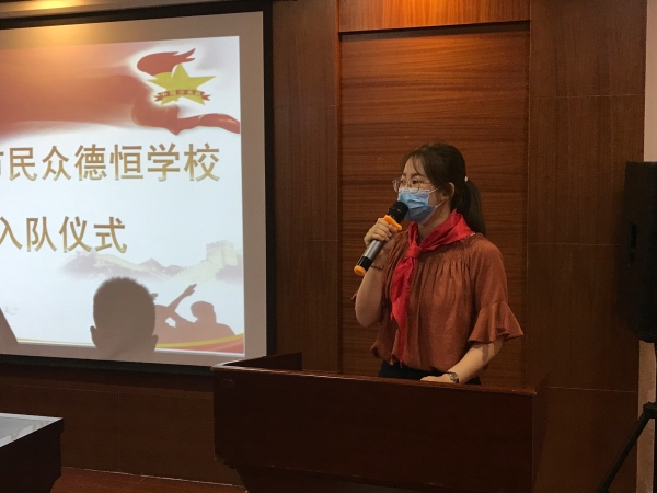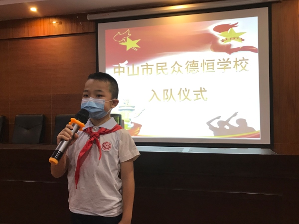 6月17日,陽光明媚,微風習習,上午九點整,中山市民眾德恒學校少先隊大隊部在校大會議室隆重舉行了一年級新隊員的入隊儀式。